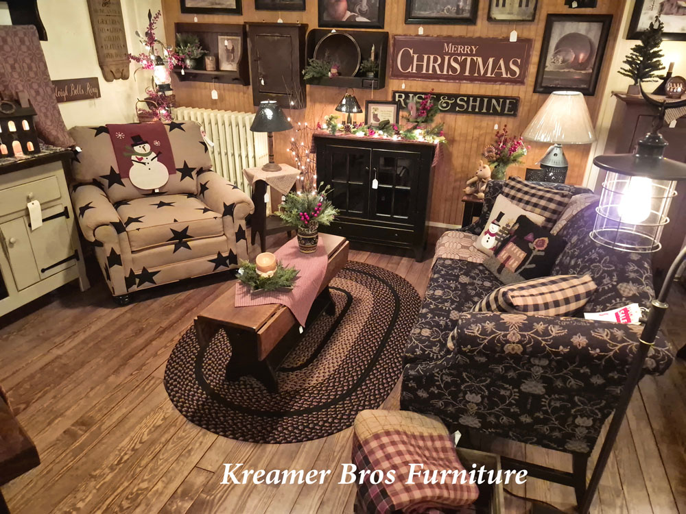 Country and reproduction upholstered furniture.